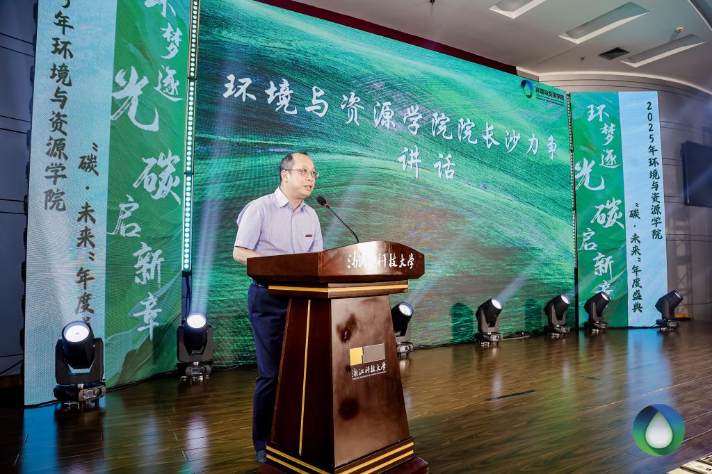 “环梦逐光·碳启新章”2025年“碳·未来”年度盛典在学校图西报告厅隆重举行。浙江科技大学校长陈建孟教授出席并致辞。杭州特种纸业有限公司副总经理吴安波,杭州华旺新材料科技股份有限公司副总经理吴海标,浙江景兴纸业股份有限公司人事部经理章红英,浙江华邦新材料有限公司研发总监陈建斌,嘉兴奥兹化工有限公司总工程师屠文浩等企业负责人受邀参加。学校党委组织部副部长、人才办副主任张学金,学工部副部长、学生处副处长、招就办副主任王德栋,研工部副部长、研究生院副院长、学科办副主任庄海峰,教务处副处长胡志军以及海角社区