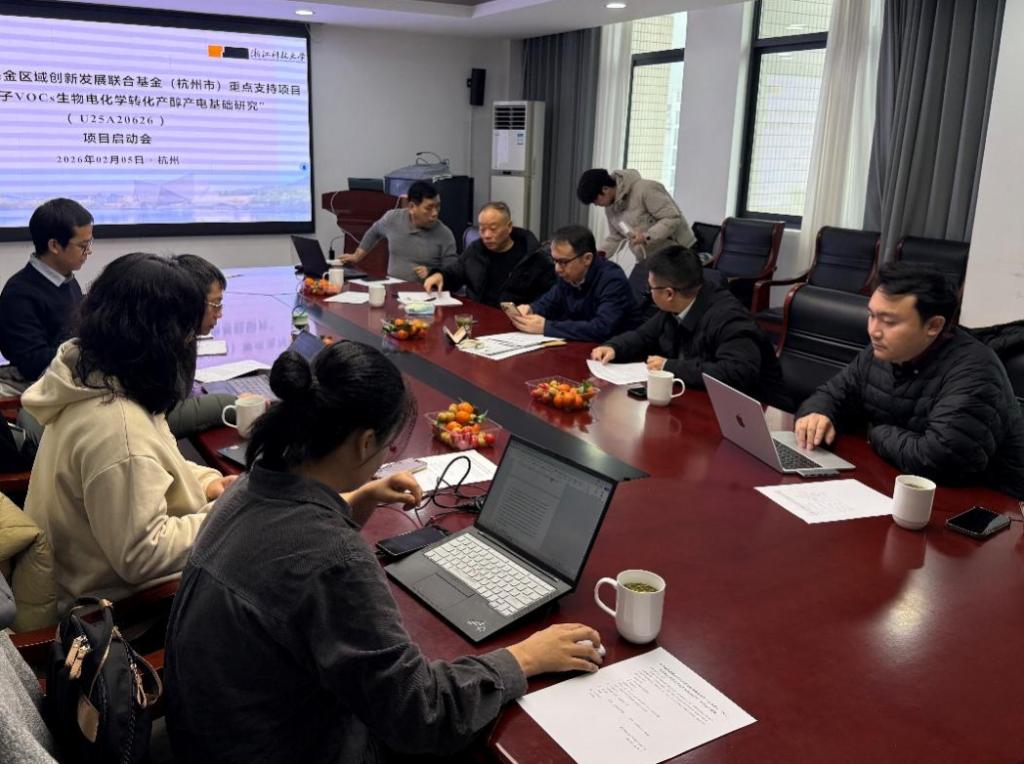 2月5号,由陈建孟教授主持的国家自然科学基金区域创新发展联合基金(杭州市)重点支持项目“含杂原子VOCs生物电化学转化产醇产电基础研究”启动会在杭顺利召开。会议特邀浙江大学李伟教授、浙江大学谢鹏飞教授、浙江工业大学钟卫鸿教授、浙江工业大学成卓韦教授等专家为项目进行指导。